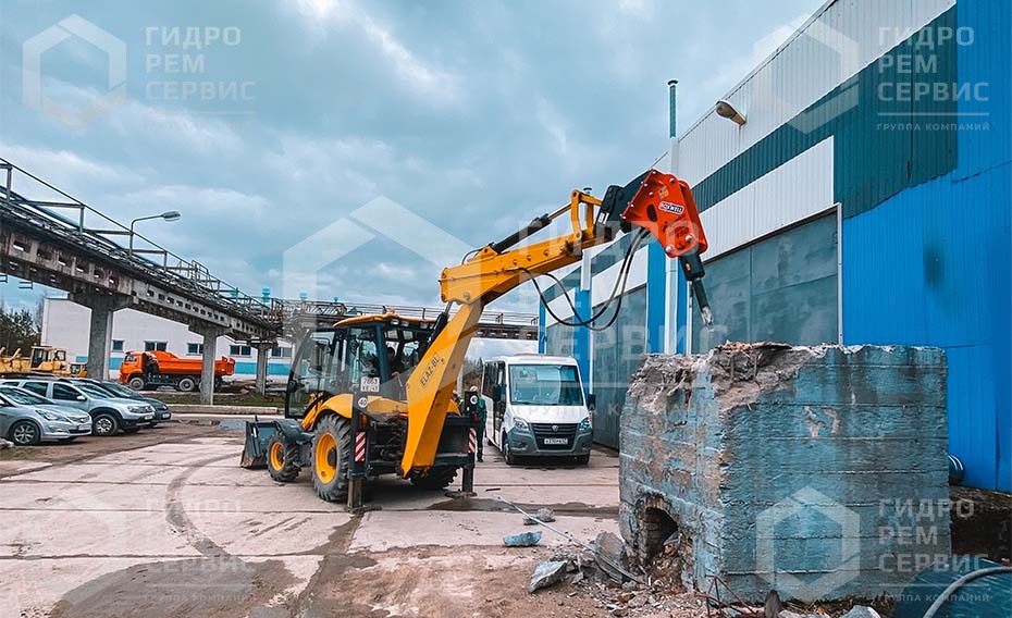Устройство используется как гидромолот на экскаватор-погрузчик, минипогрузчик или стандартный экскаватор. -